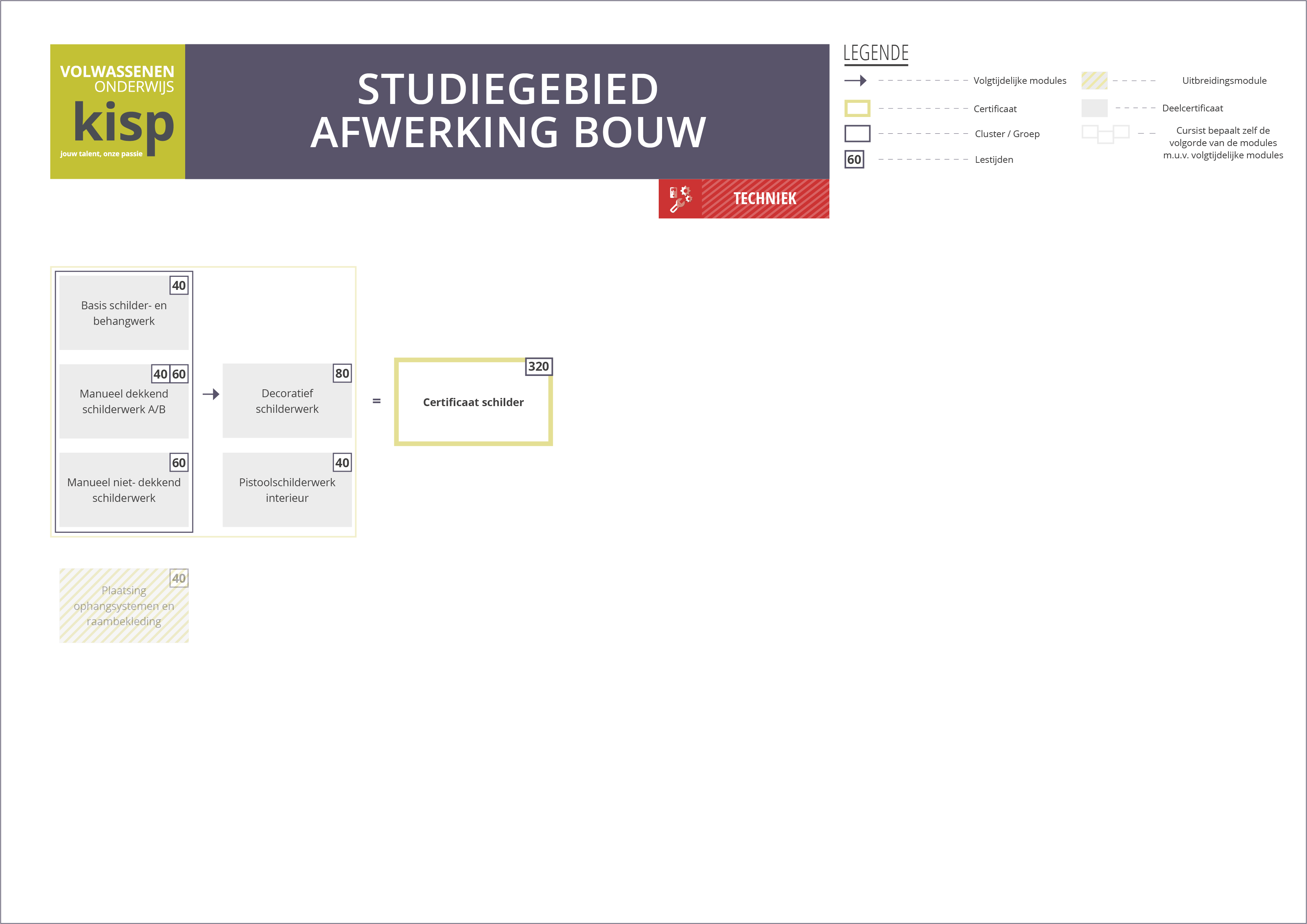 Al onze opleidingen kenmerken zich door de praktische aanpak. Op dit indoor bouwterrein leer je alles over metselen, pleisteren, sanitair, gipskarton, elektriciteit, schilderen, tegelen, … Schilderen en behangen 1 officiële benaming: Maar ook behangen en het plaatsen van soepele vloerbekleding heeft nadien geen geheimen meer voor jou... Stap voor stap leer je alle kneepjes van het vak!